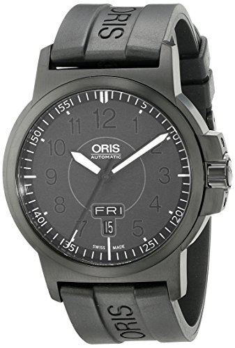 Oris Men's 73576414764RS BC3 Sportsman Day Date Black DLC Case and Rubber Strap Watch